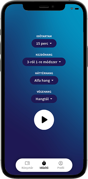 Ha egyénileg relaxálnál, az “Időzítő” fül alatt állítsd be magadnak az időtartamot, a kezdő és záró hangot, a háttérhangot.