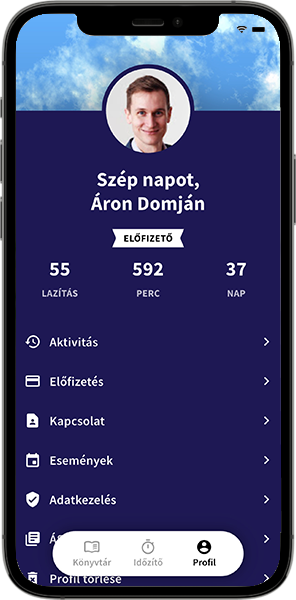 Az előfizetés korlátlan hozzáférést biztosít az applikáció minden tartalmához, beleértve több mint 60+ vezetett relaxációt, meditációt és agykontrollos hanganyagot. Továbbá élvezheted a rendszeresen frissülő új tartalmakat és újításokat. Az előfizetés havi díja 1.990 Ft, míg az éves előfizetés 19.990 Ft, amely 12 hónapot kínál 10 áráért. Mindkét előfizetési típus bármikor lemondható.
